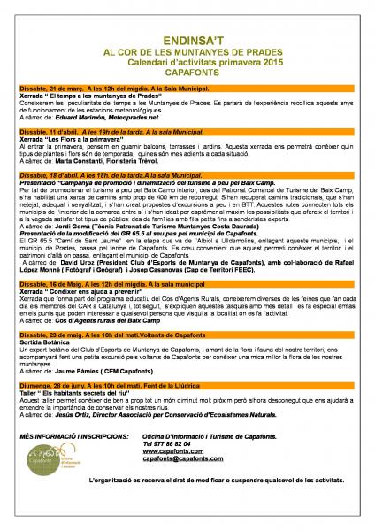 S'acosta la primavera i amb ella comença el programa d'activitats " Endinsa't al cor de les muntanyes de Prades".
