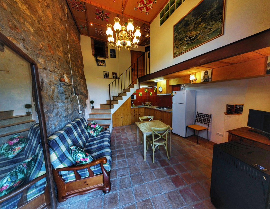 Apartament rural d'estil rústic. consta d'una habitació amb un llit de matrimoni i armari, un bany complert amb dutxa, una sala-menjador amb cuina, terrassa amb vistes privilegiades i barbacoa, i una zona de lavado con rentadora i secadora. Es proporcionen tovalloles i roba de llit. Equipada amb una estufa de pellets, es pot gaudir tot l'any.